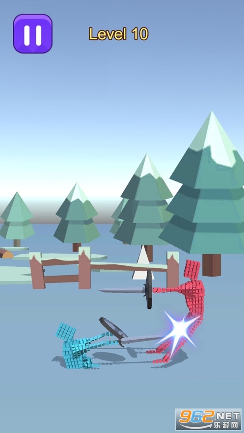 在游戏中,你操控的蓝色方块小人将与红色方块小人进行生死决战。