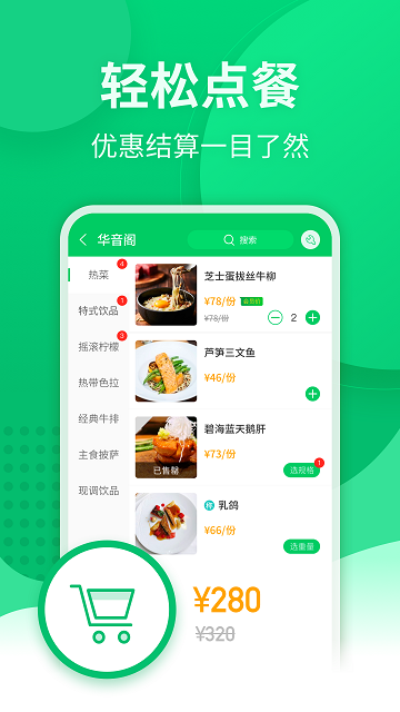 1、菜品管理、促销折扣、数据报表;离线销售、会员营销、移动支付