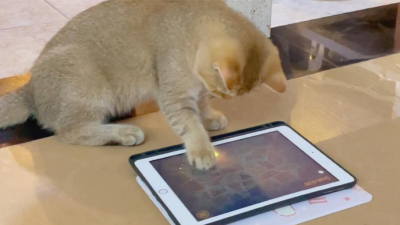 peppy cat这款游戏最近在网上特比火,只需要把手机放在猫咪面前,它就会被屏幕里一条条游动的小鱼所吸引,一定要注意好手机放的位置不要被摔倒哦,想知道当你的小猫看到这些活蹦乱跳的小鱼会是什么反应吗?是做出抓鱼的动作、下的四处乱跑还是一脸高冷呢?快来带你的小猫一起试试吧。