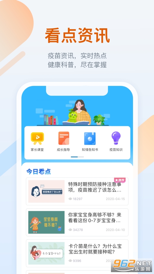 《金苗宝app最新版本》是一款能够很好的帮助家长和宝宝完成接种疫苗的应用软件,在该软件当中你可以直接搜索附近的疫苗接种点以及详细的接种时间,提前进行手机预约,避免浪费时间。平台之中也有很多关于疫苗接种方面的的专业健康知识,以做普及,能够让各位家长与孩子们都有一个新的认识和了解。