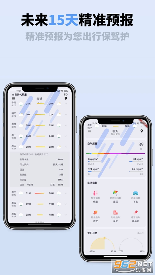 多达15种生活指数,给您提供更合适、更舒适的生活建议。