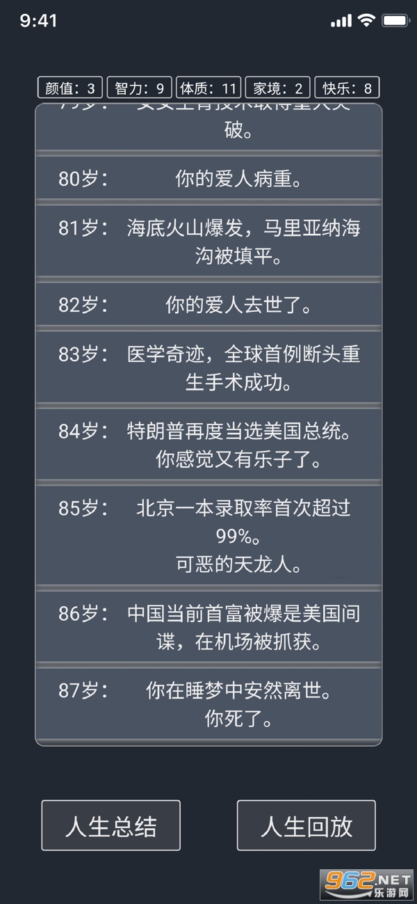 剧情故事非常精彩的一款人生重开模拟休闲游戏,以文字剧情的玩法为核心,选择你认为重要的属性重开自己的人生,代入感还挺强的,能够达成多种结局,快来下载吧!