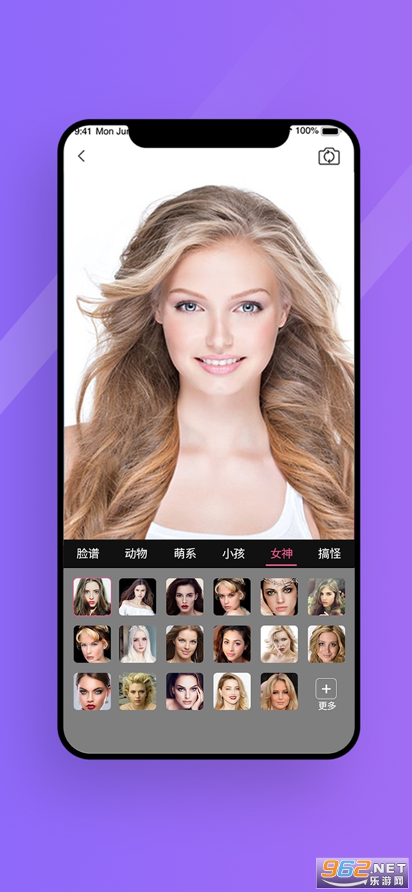 强大的拍照和修图的功能,主要的功能也是这款软件特有的功能就是智能换脸,AI智能换脸技术,漫画脸、明星脸、卡通脸、人物脸各种脸型自由选择,录视频的时候非常有用。