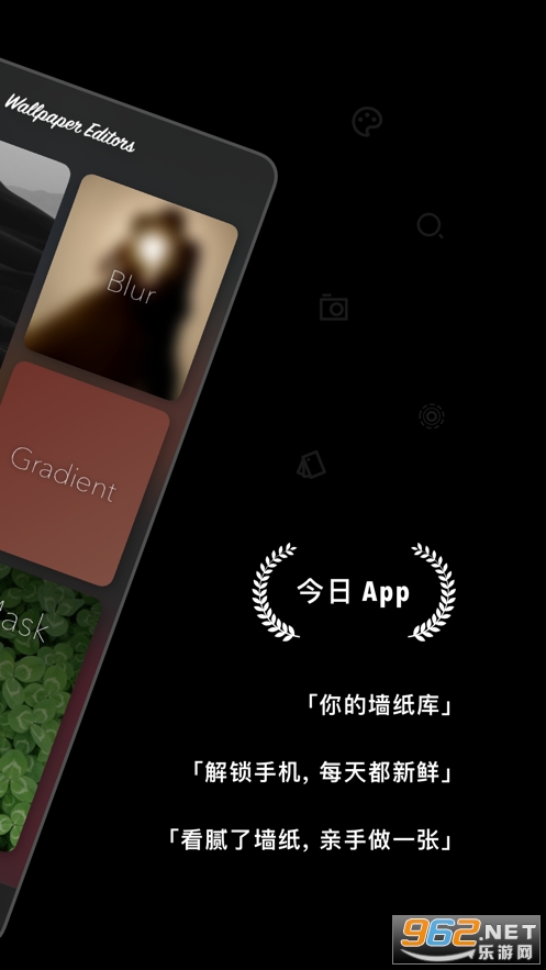 渐变色:约 200 款精选渐变配色,挑选你最喜爱的作为主屏壁纸。你还可以通过克拉壁纸强大的编辑器创作任何色彩,任何角度的渐变色壁纸。