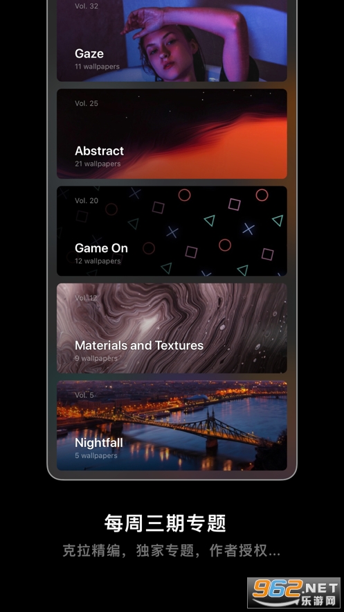专题涵盖风景、人物、抽象、静物等不同风格,每期一个主题,由克拉壁纸官方进行挑选和制作而成。原图大多来自于网络无版权图库,以及通过摄影师本人授权。
