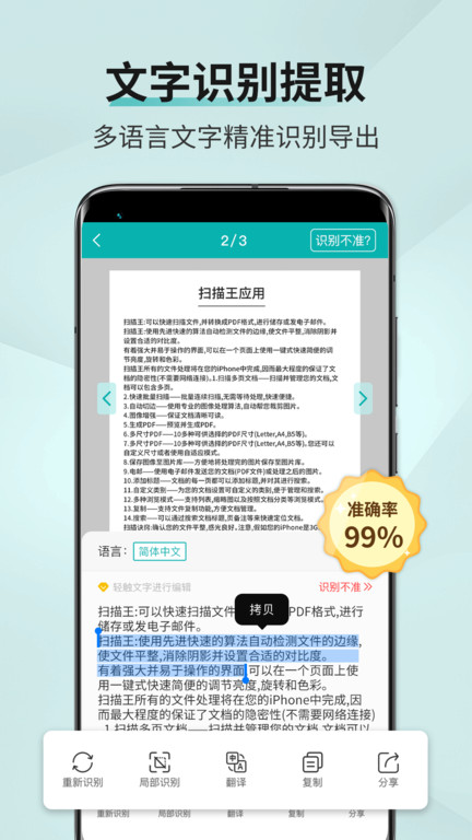 可以将纸质文档快速扫描成清晰的电子文档,能够帮助大家在线识别超多不同种类的语言,通过软件还可以自动在线校正文字,了解不同的管理信息更加的全面,实用型的办公无纸化节能工具!