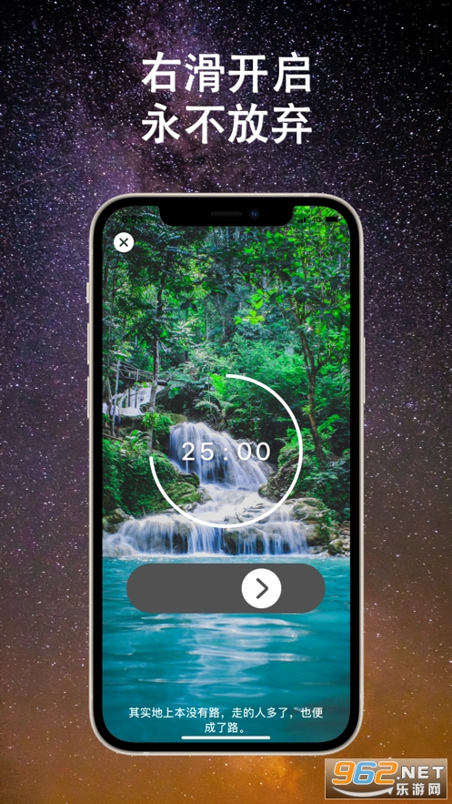 不同于同类应用以点击方式开始,青橙时间通过向右滑动的方式打开番茄钟,这种方式可以避免误触现象的发生,再加上不同种类的无损白噪声以及绚丽多彩的背景图片,你会知道,接下来,就是全身心投入的专注时刻!