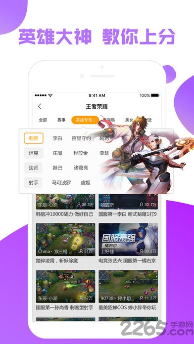 2.王者荣耀专区,精准2265英雄筛选,各路大神教学带你飞