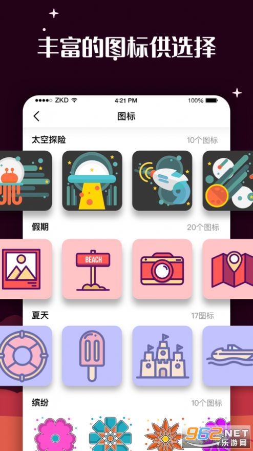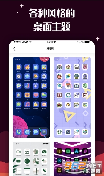 2、提供丰富的精心设计的图标图片与配套的主题壁纸,你可以从中任意挑选;