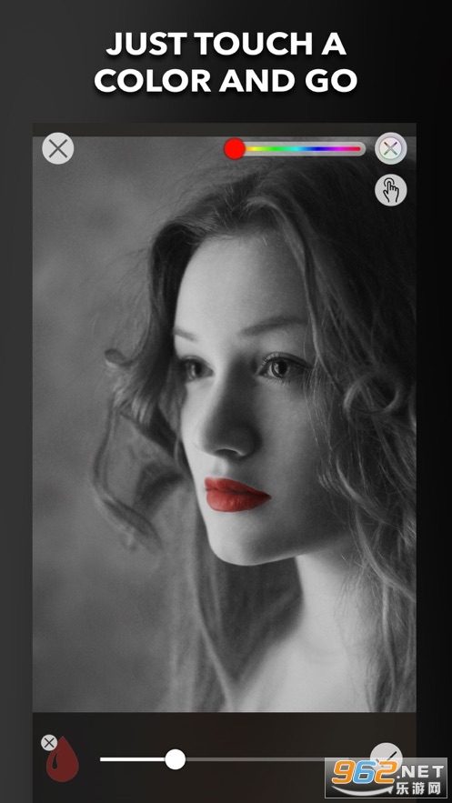 使用起来很简单,打开照片后,点击你想要保留的颜色,再调整进度条,会从全黑白全彩色,挑选一个合适的色彩,就可以分享了。