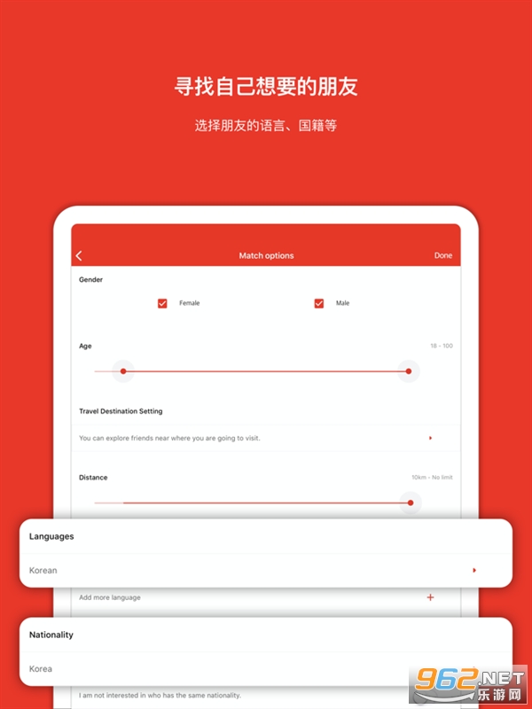 在MEEFF,可以按照年龄/性别/语言寻找的附近的韩国朋友,跟他們一起享受。