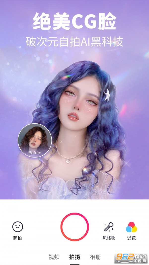 独有磨皮祛痘、瘦脸、瘦身、美白、眼睛放大等多种强大美容功能,让用户轻松拥有天使面容。