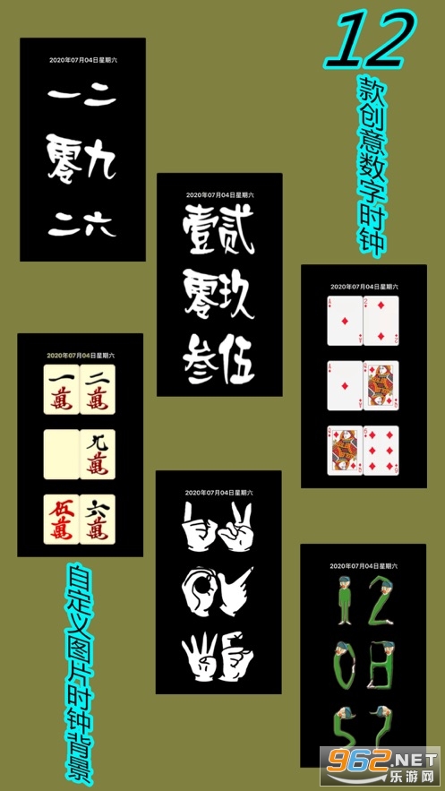 时钟内创意数字:男神数字,大写数字,中文汉字,手势数字,麻将数字,扑克数字等。。