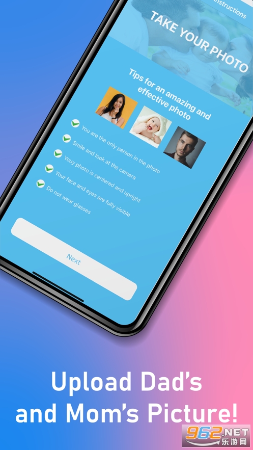 您还可以上传婴儿未来的父母的照片,这样应用程序将生成最有可能预测的儿子或女儿的照片。