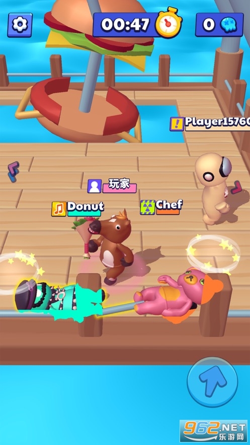 3、试着不要绊脚或跌到,拽起其他玩家并把他们抡出拳击场,战斗到最后。