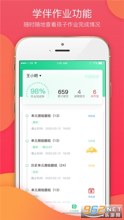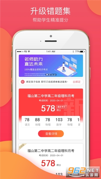 03.考试答题情况,及时了解。帮助家长了解学生考试情况,便于学生随时回顾考试详情。