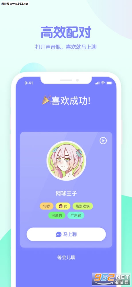 匿名形象,无所顾忌,遇到中意的TA就大胆开聊,用声音把TA撩到手吧。