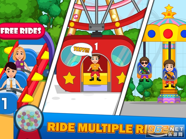 当您探索公园并尝试诸如旋转木马、过山车、摇椅等郊游活动时,您可以进行各种有趣的冒险;