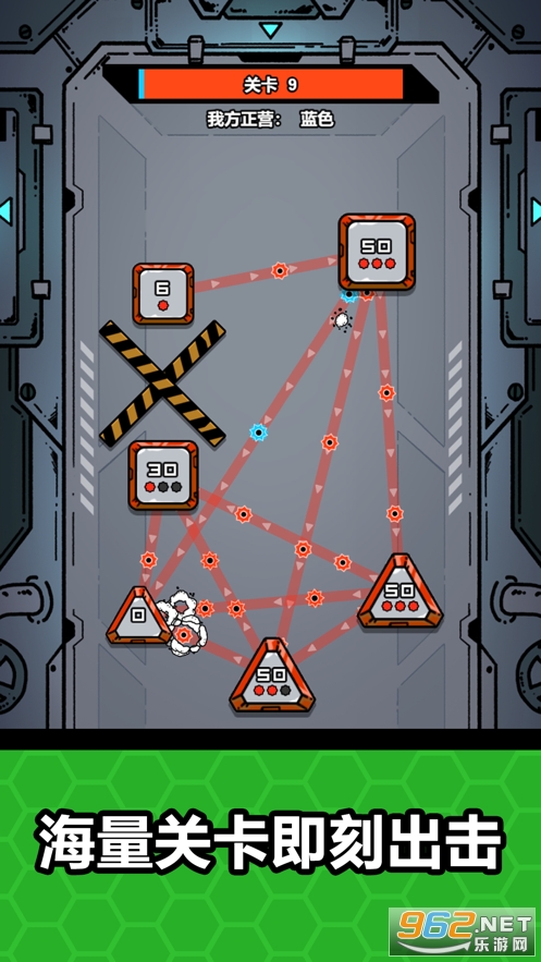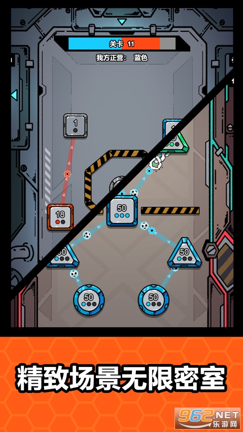 《几何冲突》是一款风格清新,玩法简单但不乏深度的益智类策略小游戏。通过不同颜色阵营,不同的几何形状代表的特征,用最直观的数字表达一局游戏的胜负。当整张地图都被蓝色所占领时,玩家便获得了一场游戏的胜利!