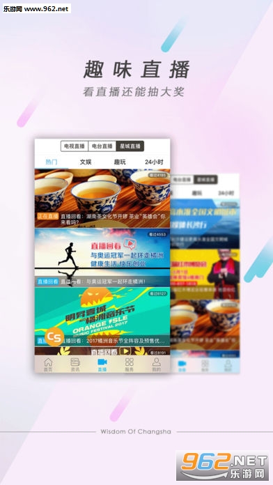 【直播】:长沙新闻频道、长沙政法频道、长沙女性频道等长沙广电旗下所有的电视与电台直播。