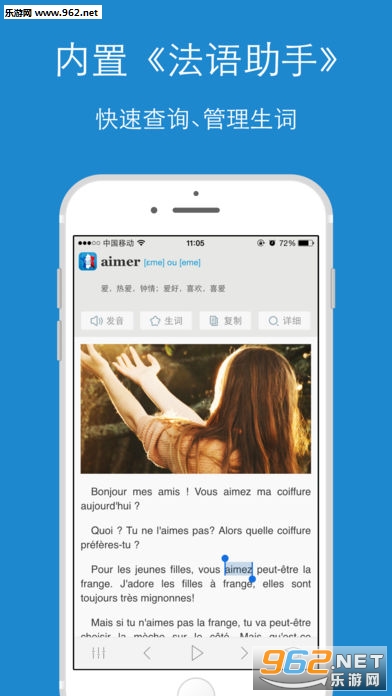 与权威的法语词典软件《法语助手》无缝集成,查词典、背单词轻松搞定。 软件特色