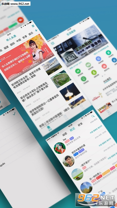 社交:海外寻同乡、同城交友、随机偶遇、照片分享、一对一交流;