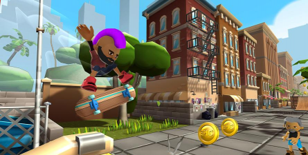 一款非常有趣的花样滑冰跑酷游戏,游戏中你将控制这两个人在道路上不断的前进,通过各种华丽的动作来躲避障碍物,游戏的玩法轻松有趣,收集更多的金币,解锁更多的奖励,推荐给喜欢休闲游戏的玩家。