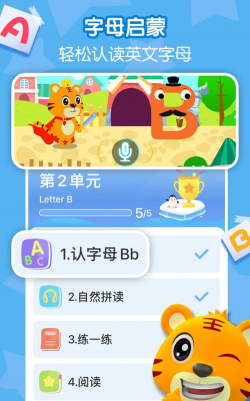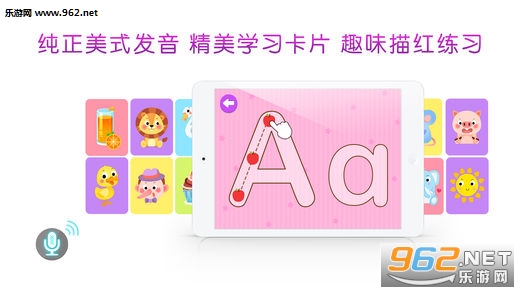APP中将字母描红和发音练习、趣味动画有效地结合起来,让枯燥的字母书写不再乏味。