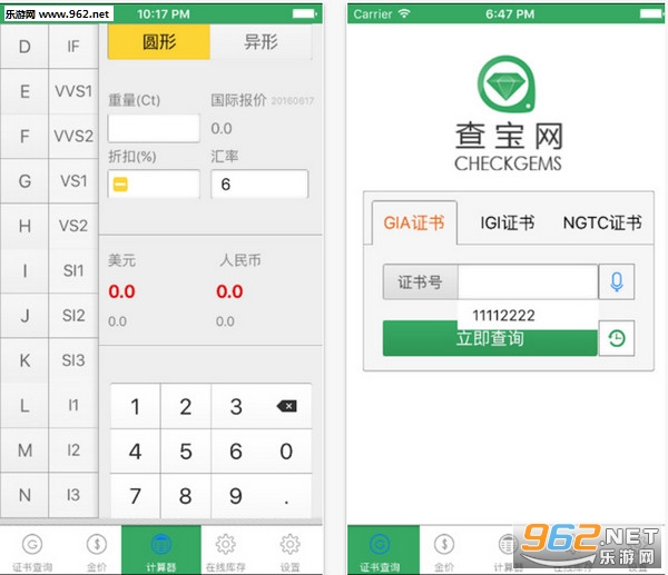 查宝网app是国内珠宝钻石等专业计算器手机软件,金额图直接查询权威的GIA证书,下载GIA证书,使用查宝网珠宝砖石价格计算器,了解真正的珠宝钻石,为珠宝钻石交易提供安全安全保障。