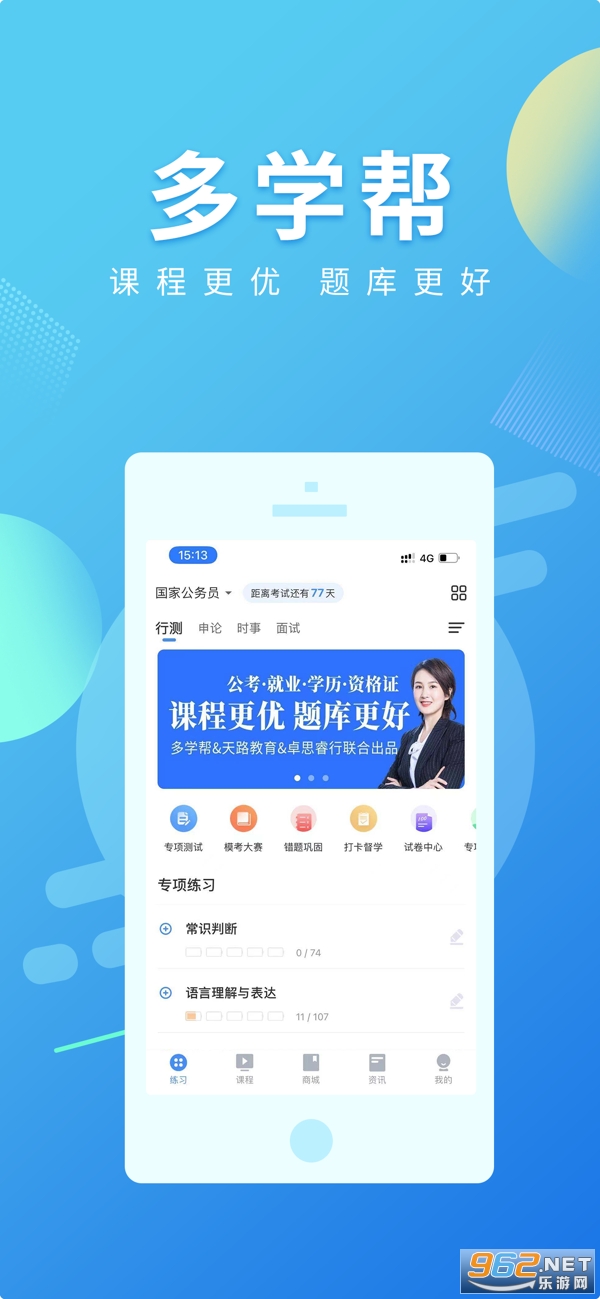 《多学帮APP》是一款非常优秀的职业教育学习软件,更多优质课程辅导你学习,让你能够安心去复习,涵盖的面非常之广,有公考、教室资格考试、会计师考试、烟草考试等等,大家可以根据自己的方向选择,官方每天都会更新超多最新的题目,每天多花点时间刷题,绝对对你的成绩有很大的提升。