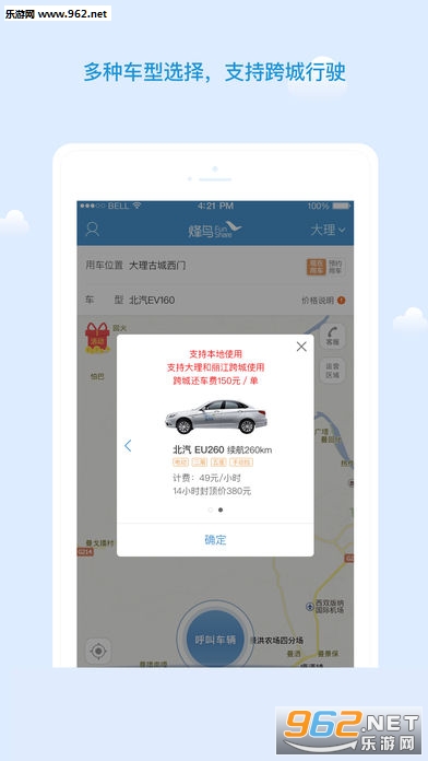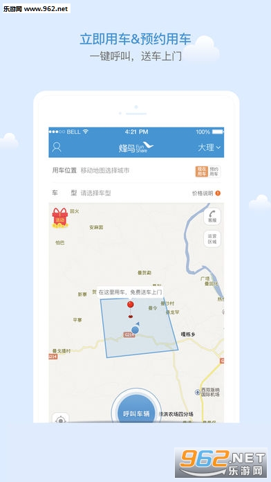 送车上门:选择“呼叫车辆”,等待客服电话确认所在位置,专人送车上门,15分钟内极速送达,租车比打车还简单。