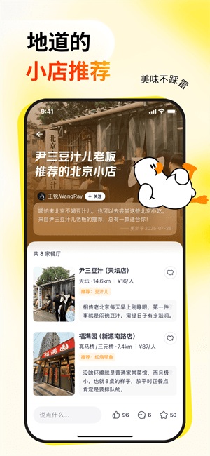 鸭觅iphone版以消费点评为主要功能打造的生活服务平台。在这里你可以成为一名点评官来对不同餐厅进行评价,或是作为消费来找到高分、受到大家推荐的店铺,通过查看点评能够提前进行筛选,减少踩雷的情况。