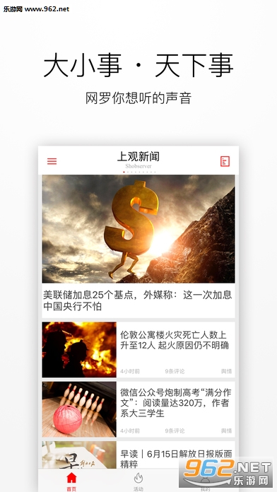 《上观新闻ios客户端》是一款上海新闻咨询平台应用,立足上海,但是眼光局限在一个地方,放眼全球,所以值得关注的新闻事件,值得为之发声的新闻事实,都会由上观新闻为您推荐,想要精品资讯服务,就试试上观新闻ios客户端应用吧。