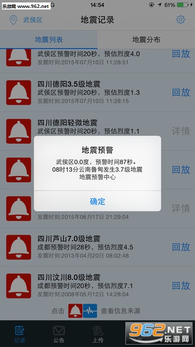 5.支持回放历史地震预警记录信息;