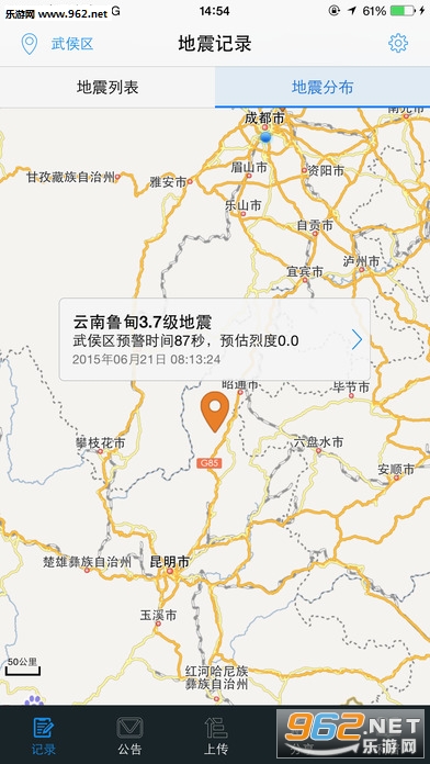 7.支持通过地图显示震中位置;