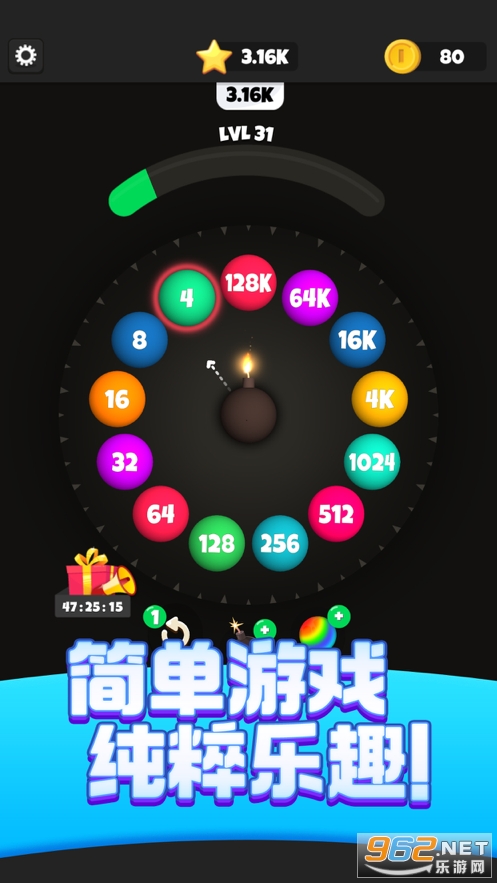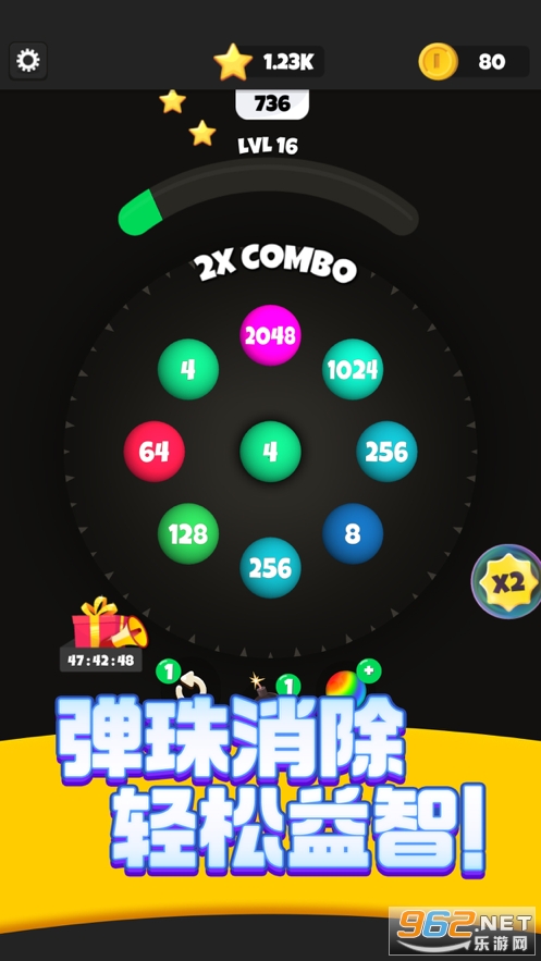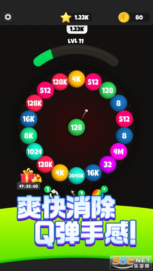 是一个射击式的弹珠元素2048游戏,玩家在游戏中可以旋转,调整弹珠的发射方向,相同数字的弹珠相撞后自动合成。祖玛玩法开启2048全新玩法!