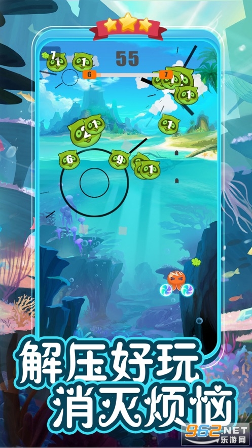 《疯狂弹力球》是一款画面清新的类似打砖块的击碎下落小熊的趣味休闲手游,游戏中玩家将控制一个小章鱼冒险,可以发射子弹去攻击上方的小熊,关卡开始后会有着大量的小熊从上面往下落,而且有着数值,这个数字就是小熊的血量,可以升级强化提高小章鱼的攻击力,击碎小熊。