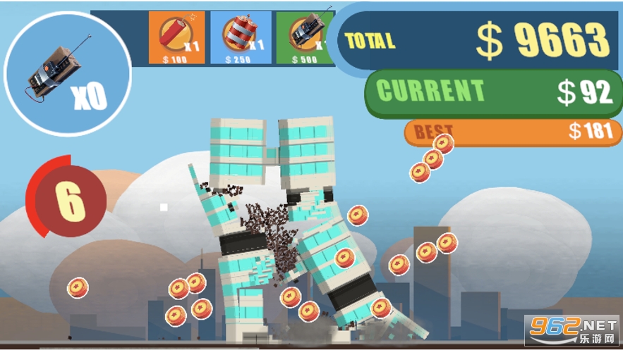 一款非常解压的城市爆破游戏,面对不同的建筑你需要在不同的位置安放不同数量的炸药,游戏的操作简单容易上手,还有着超多的玩法等你进行挑战,获得更高的分数和挑战,还在等什么呢?推荐给喜欢休闲游戏的玩家。