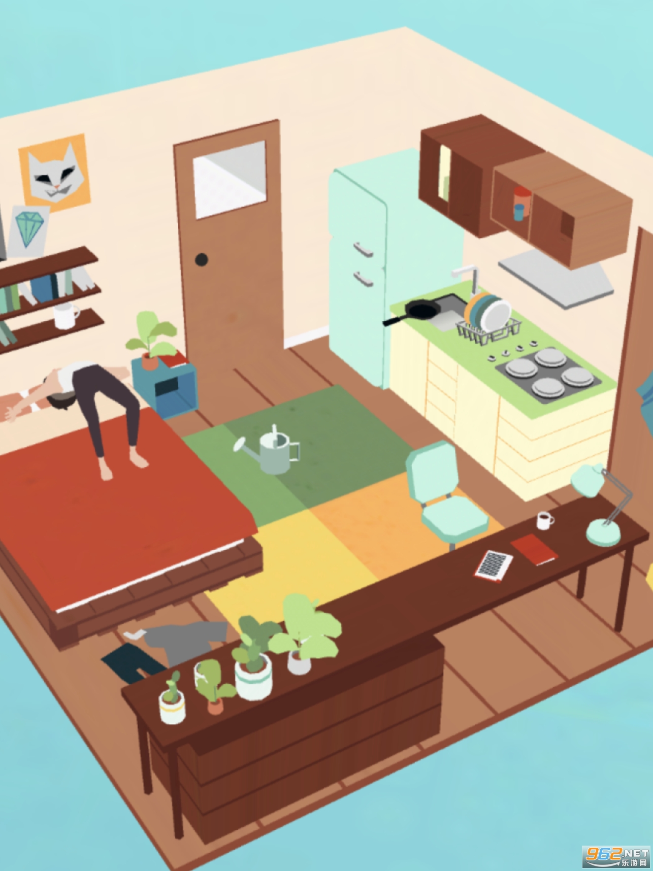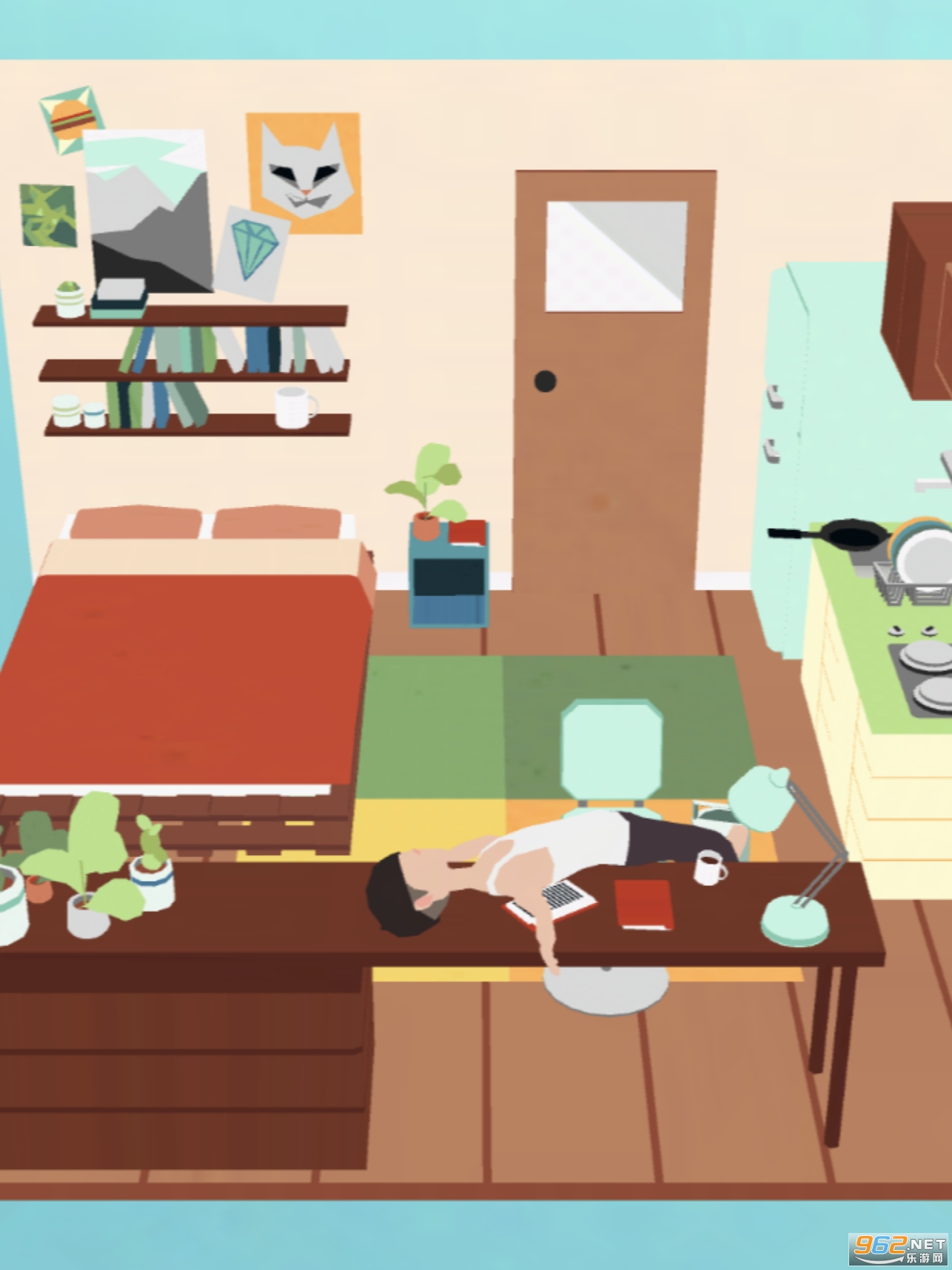 李是一位爱睡懒觉的人,他幻想着可以在睡梦中完成一天的工作事宜。现在我们来帮助他,点触拖拽屏幕操作角色,注意了,在不吵醒角色前提下完成所定的任务,动静不要太大,否则李被吵醒会生气的。