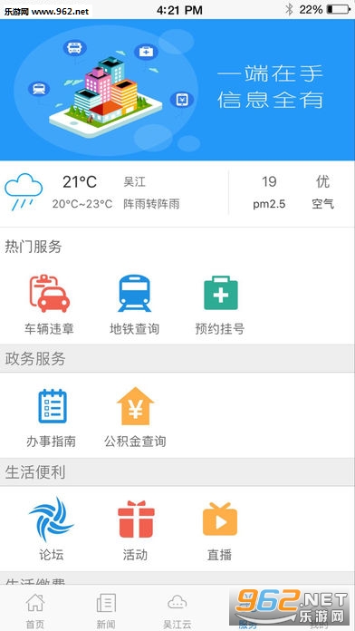 “今吴江”以权威新闻作为基础服务,第一时间发布吴江主流新闻资讯;以东太湖论坛作为互动平台,打造吴江家喻户晓的社交网络精神家园;以智慧城市服务为主打产品,为市民提供医疗、教育、社保、出行、缴费等各个生活领域的公共服务;以智能抓取技术为增值功能,集纳吴江地区影响力大的政务、,全面展现舆情动态。