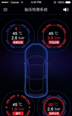智能胎压手机版是一款配合硬件‘蓝牙TPMS传感器’使用的汽车轮胎压力检测软件,用户可以通过手机蓝牙与设备进行连接,随时监控车辆轮胎的气压与温度,在出现异常后能快速报警提示!