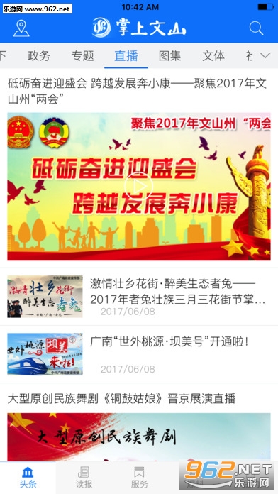 包括文山头条、要闻、天下、读报、专题、直播、文体、社会、民族、文学、旅游、购物、美食、视频、图集、同城、微言等栏目,每天播发文山本地新闻资讯。