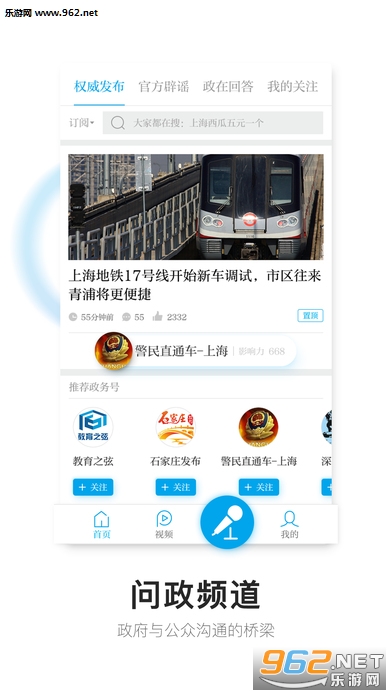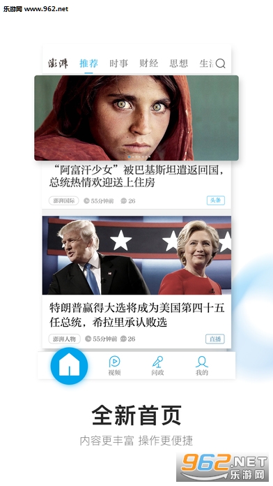 视频频道:原创、精选最有价值的新闻短视频;直播新闻事件,传送真实现场。