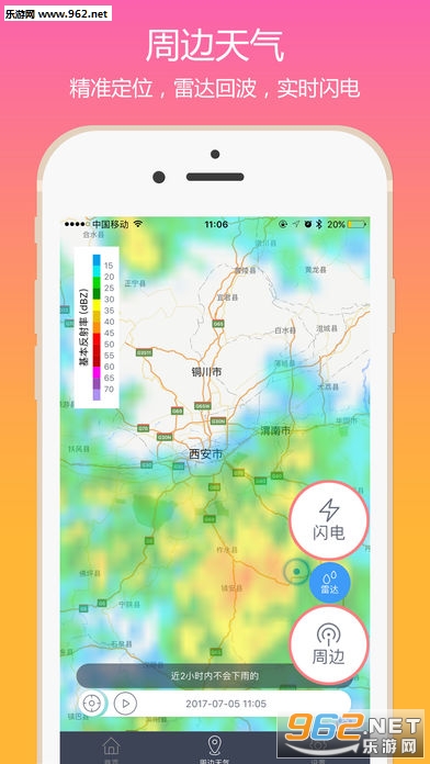天气地图:雷达回波图和实时闪电定位图,精美易懂。