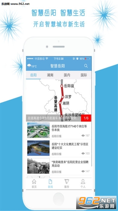 《智慧岳阳ios手机版》,每日发布岳阳日报、黄河晨报的新闻资讯,提供运城本地新闻、服务、资讯。是一个跨行业、跨媒体的新闻平台,读者和受众可以在第一时间了解国内外及本地新闻资讯!