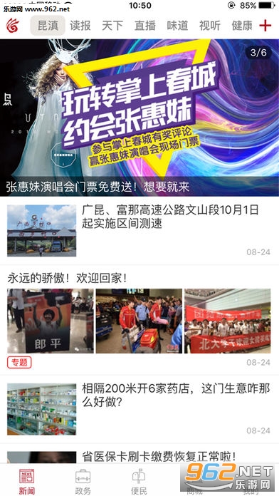 《掌上春城新闻客户端》这是一款本地类的资讯服务客户端。只要登录掌上春城APP,就能浏览最新的国内新闻、本地动态、政务信息、电子报纸等内容,同时还有电视电台、即时直播等视听板块。用户还可以享受到水电缴费、违章查询、在线订票等贴心的便民服务。感兴趣的用户赶紧下载掌上春城APP!