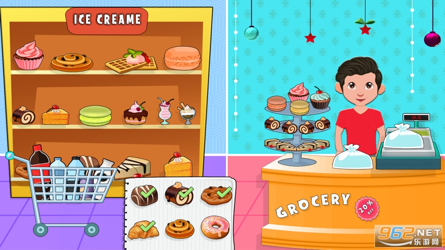 1、杂货店购物游戏的画面采用了高清的3D卡通类型的风格制作,带来更加轻松的游戏氛围。