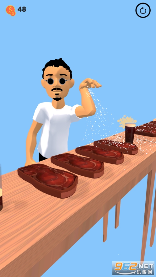 2、如果是牛排,就要撒上盐巴,让牛肉具有美味口感,考验手速;
