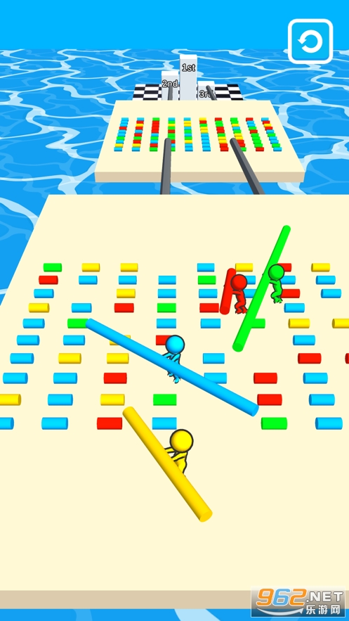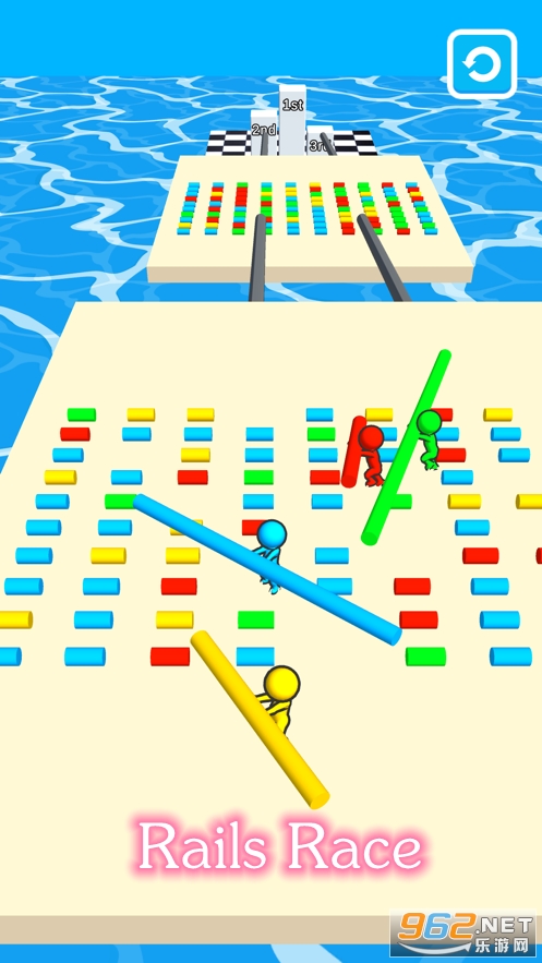 《Rails Race游戏》是一款非常独特的跑酷类的休闲游戏,只有收集足够长的木棍你才能够从板块与板块之间通过,和其他的角色进行比拼,以最快的速度收集各种圆柱体向着终点前进。感兴趣的话就快来下载吧!