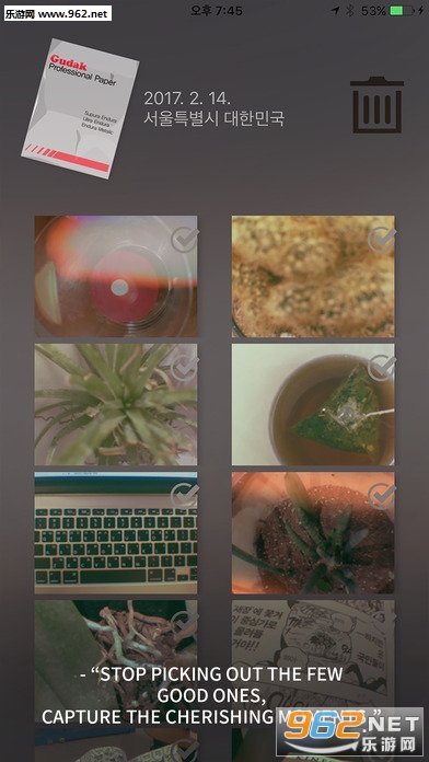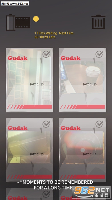 此外,Gudak Cam的24张胶片用完并不意味着你能马上看到照片效果,它们会自动进入你手机中私人“相机冲印店”,你需要等待3天,等照片冲印好之后才能观看。